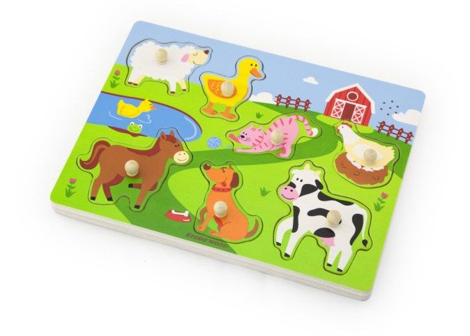 Krásně barevná dřevěná vkládačka – zvířata na farmě. Každé