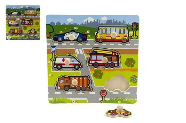 Vkládačka Moje první auta dřevo 6ks 22,5x22,5x2,5 cm 12m+ MPA