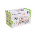 Tato originální vkládačka v sobě spojuje hru a objevování – děti vkládají různé tvary nebo figurky do správných otvorů a při tom rozvíjejí jemnou motoriku, logiku i představivost. Vozidlo má pevná kolečka a lze s ním jezdit, takže nabízí i možnost aktivní hry. Díky přírodnímu dřevu a jemnému designu je nejen zábavné, ale i esteticky příjemné. Velikost balení: 26 m x16cm x15cm Vhodné pro děti od 18 měsíců.