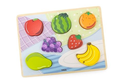 Dřevěná vkládačka s ovocem. Rozměry dřevěné desky cca 30 x 22,5 cm. Rozměry balení cca 30 x 25 x 2 cm. Věk 18m+