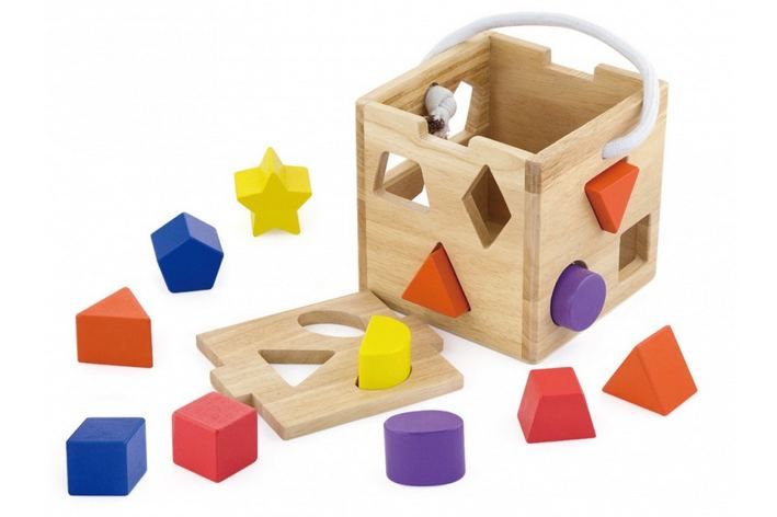 Krásná dřevěná vkládačka ve tvaru kostky. Děti se učí tvary, barvy.