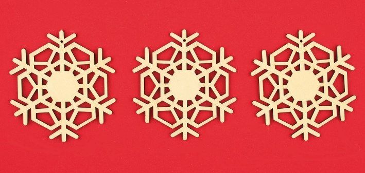 Dřevěná vločka závěsná 8 cm, 3 ks