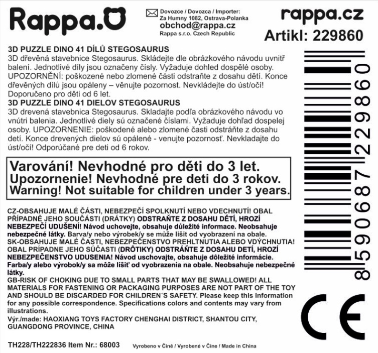 Dřevěná 3D stavebnice puzzle dinosaura rozhodně nesmí chybět ve tvém pokojíčku! Tato hračka neslouží pouze k vystavení na poličce. Díky této stavebnici se rozvíjí u dětí myšlení, jemná motorika i představivost. Jednotlivé dílky lze jednoduše vyloupnout a poskládat dle přiloženého návodu. Puzzle obsahují 41 dílků.