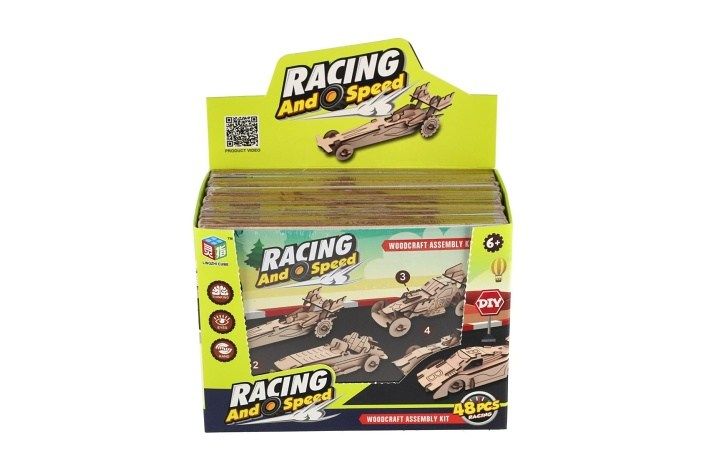 Kreativní dřevěná stavebnice v podobě závodních aut nadchne všechny malé konstruktéry i milovníky rychlých kol. Jednotlivé dílky se jednoduše vylamují z dřevěné překližky a skládají bez použití lepidla. Výsledkem je detailně propracovaný model auta, který poslouží jako hračka i stylová dekorace. Každé balení obsahuje 4 ks stavebnice. Stavebnice podporuje rozvoj jemné motoriky, trpělivosti, logického myšlení a prostorové představivosti.