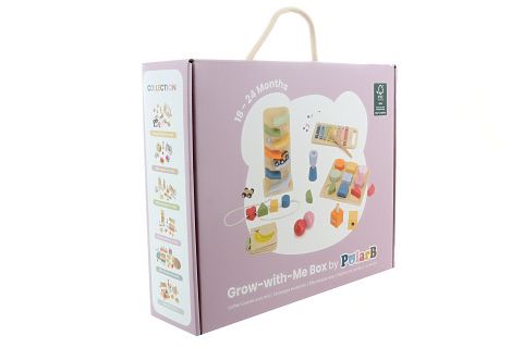 Dřevěné aktivity pro děti 18-24 měsíců. Vše pro rozvoj paměti a jemné motoriky. Sada obsahuje klouzačku s auty, xylofon, šroubky s tvary, knížku, provlékačku a vkládačku s tvary. Rozměry balení 35x29,5x9,5 cm. Věk 18-24m