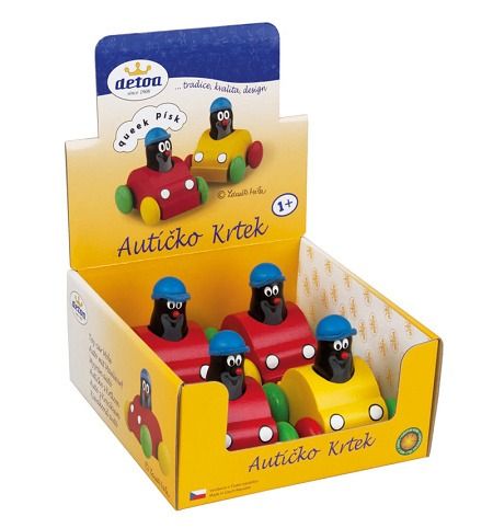 Barevné autíčko s Krtečkem udělá radost všem, kteří milují tuto oblíbenou pohádku! Navíc, když stiskneš Krtka, uslyšíš písknutí. Vše je vyrobeno ze dřeva. Autíčko jezdí na volný chod. Stačí si vybrat! Rozměry krabičky jsou 160 x 160 x 75 mm.
