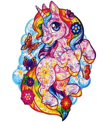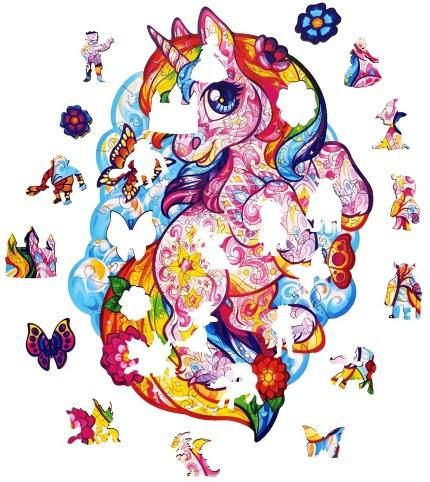DŘEVĚNÉ BAREVNÉ PUZZLE - Pohádkový jednorožec