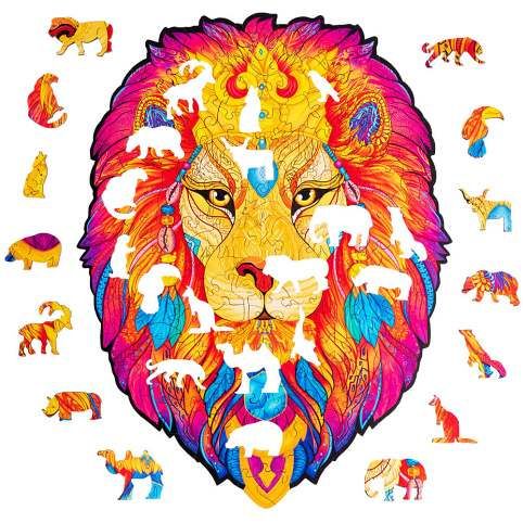 DŘEVĚNÉ BAREVNÉ PUZZLE - Tajemný lev