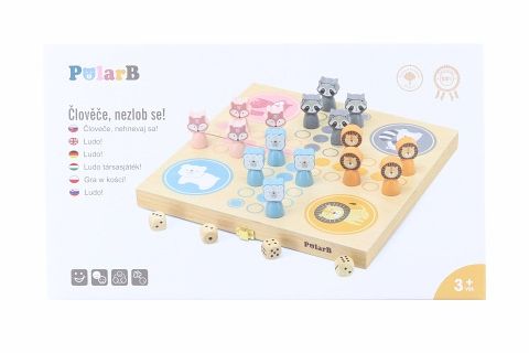 Dřevěná hra Člověče nezlob se!. Motiv zvířátka. Rozměry balení cca 31,5 x 5 x 18,5 cm. Věk 3+