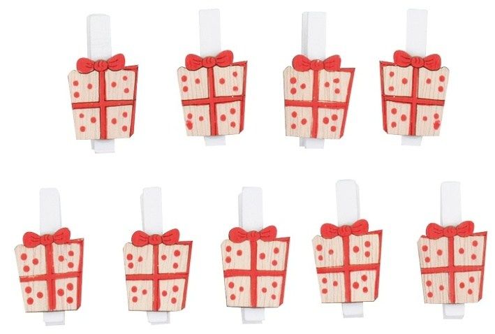 Dřevěné dárečky na kolíčku 4,5 cm, 9 ks