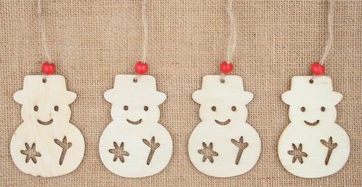 Dřevěné dekorace ze dřeva 4 sněhuláci, 8cm