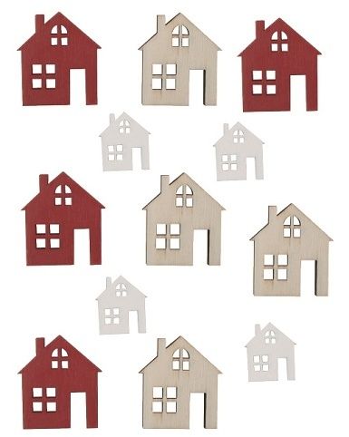 Dřevěné domečky Domečky využijete k různým dekoračním či aranžérským účelům. Můžete je použít k ozdobení věnců, vazeb nebo třeba přáníček. 12 kusů v sáčku, mix barev a velikostí.