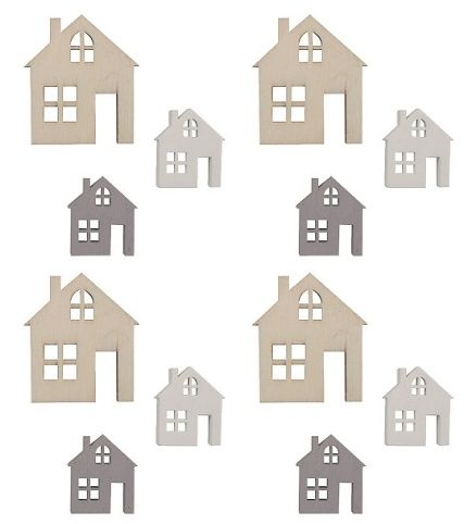Dřevěné domečky šedé mix velikostí cca 4 cm, 12 ks