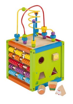 Dřevěné hrací centrum kostka. Rozvíjí dětskou fantazii a motoriku.