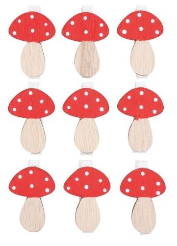 Dřevěné hříbky na kolíčku 4,5 cm, 9 ks