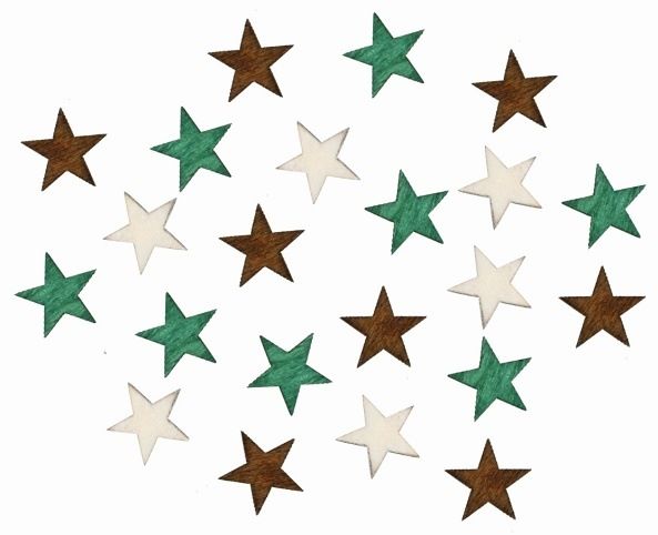 Dřevěné hvězdy hnědé a zelené 2 cm, 24 ks