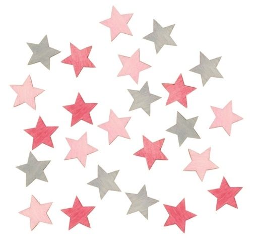 Dřevěné hvězdy růžové a šedé 2 cm, 24 ks