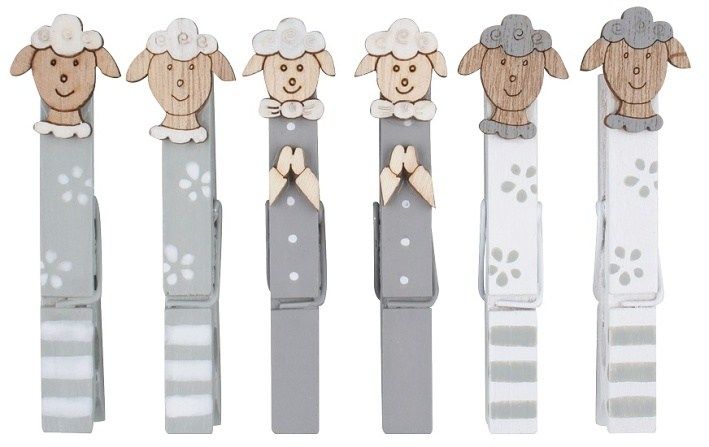 Dřevěné kolíčky šedé ovečky 8,6 cm, 6 ks v sáčku