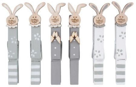Dřevěné kolíčky zajíčci 8,5 cm, 6 ks v sáčku