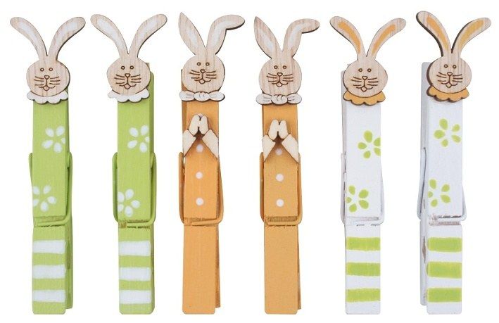 Dřevěné kolíčky zajíčci 8,5 cm, 6 ks v sáčku