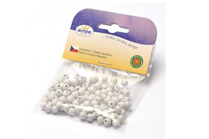 Dřevěné korálky 6 mm, bílé, 125 ks