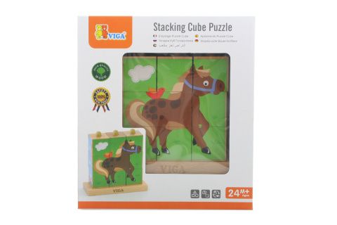 Dřevěné kostky, které lze stavět vertikálně - navlékáním na tyčky. Lze složit 4 různé obrázky. Rozměry hračky cca 14,5 x 14 x 5,5 cm. Rozměry balení cca 20 x 22 x 6,5 cm. Věk 2+