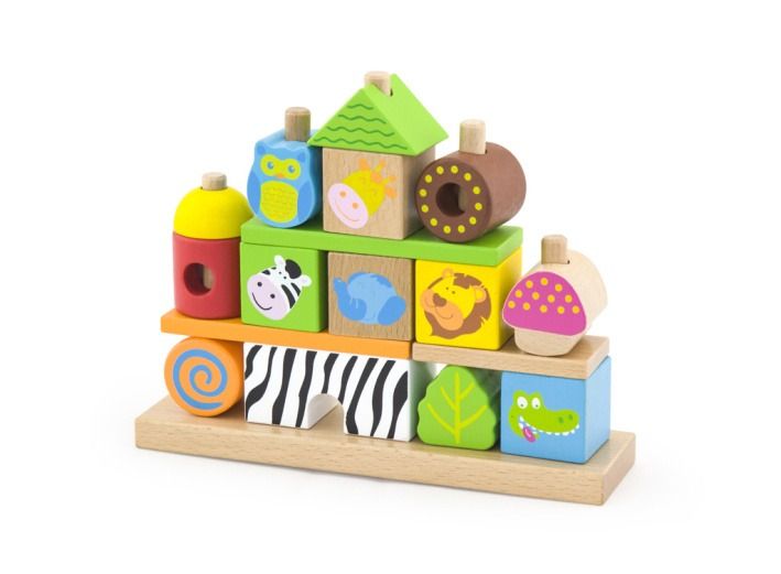 Krásné dřevěné barevné kosty které mají veselé potisky.