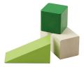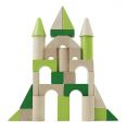 Inovovaná stavebnice skládající se z různých tvarů a velikostí dřevěných dílků v zeleno-přírodním barevném provedení. Kromě klasických krychlí, kvádrů a válečků obsahuje také jehlany, mosty a další tvary. Díky tomu lze postavit úžasné stavby. velikost kostky 27 mm, Stavebnice obsahuje 45 dílků.