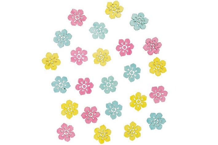 Dřevěné květy využijete jako krásnou dekoraci nejenom na jaře, ale i na Velikonoce. Květy lze použít i k aranžování. Sada 24 ks. Rozměr 2 cm