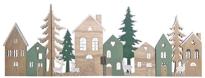 Dřevěné leporelo městečko k vystavení, 58 x 21 x 0,5 cm Toto dřevěné leporelo s motivem zimního městečka je působivou dekorací, která oživí váš interiér během adventu a Vánoc. Díky skládací konstrukci jej snadno umístíte na stůl, poličku nebo parapet, kde vytvoří malebnou scénu plnou klidu a sváteční atmosféry. Použití: Lze jí vystavit samostatně nebo integrovat do většího aranžmá. Díky ploché konstrukci se snadno skladuje. Vlastnosti: rozměry: 58 x 21 x 0,5 cm (rozložené)rozměry: 15,5 x 21 x 2,5 cm (složené)materiál: dřevoleporelo určené k vystaveníDřevěné leporelo městečko vám do domova přinese klidnou zimní atmosféru a pohádkové kouzlo svátků.