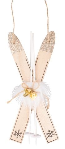 Dřevěné lyže na zavěšení zlaté 21 cm
