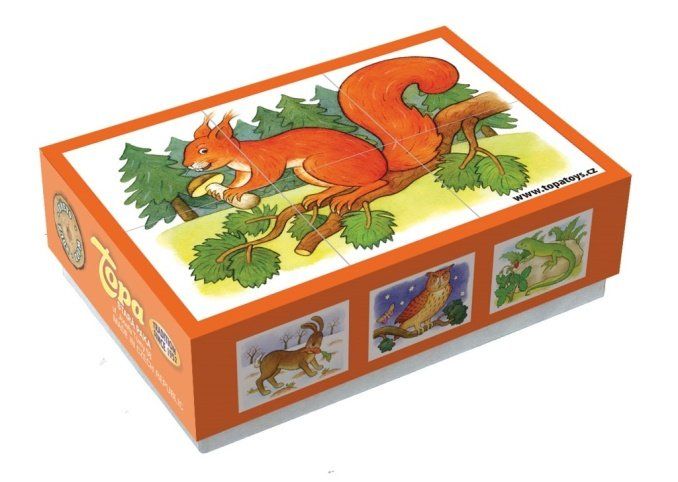 Kostičky Veverka. Zajíc s mrkvičkou, moudrá sova, ryšavá liška nebo