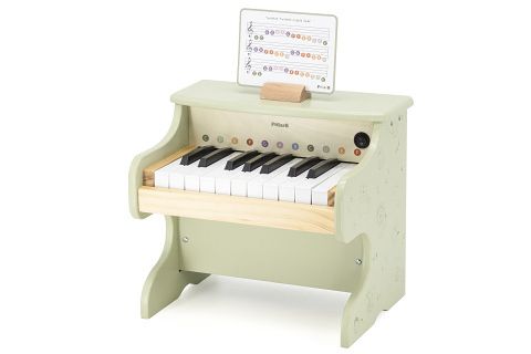 Dřevěné piano na baterie. S notami mohou mladí hudebníci začít hrát své první skladby jednoduše podle barevných teček nad klávesami (noty součástí). Rozměry piana 33x29x25 cm. Baleno v krabici. Rozměry balení 37x34x30 cm. Napájení na 4xAA baterie - nejsou součástí. Věk 3+