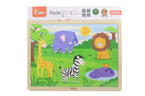 Dřevěné puzzle s obrázkem divočiny. Celkem 16 dílků. Rozměry obrázku cca 27,5 x 20 cm. Rozměry balení cca 30 x 27 x 1 cm. Věk 24m+