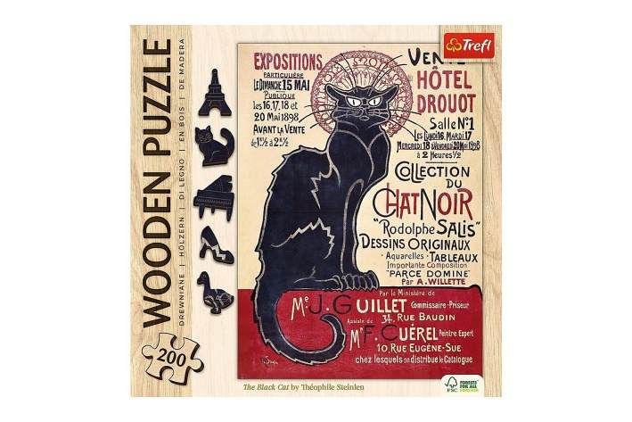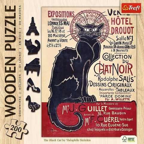Dřevěné puzzle Černá kočka 200 dílků 19x26cm v krabici 20x20x6cm