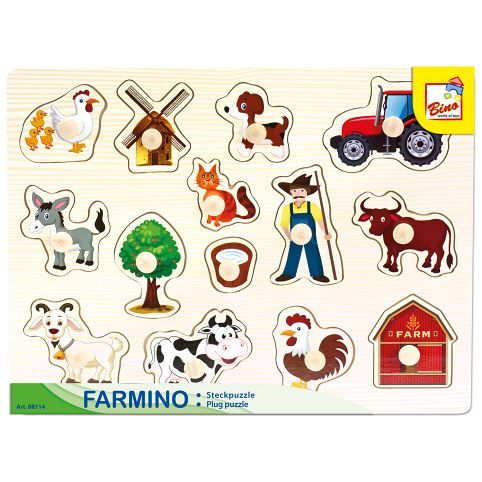Velké puzzle na dřevěné desce s vyndavacími obrázky nám přináší život na venkově a všechny zvířecí pomocníky. Hra rozvíjí dětskou motoriku.