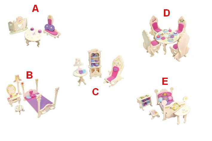 Dřevěné puzzle-nábytek pro panenky 20x15 cm