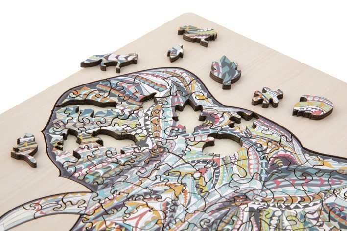 Dřevěné puzzle Sova 137 dílků – balení obsahuje stojánek na kterém si svoje puzzle můžeš vystavit. Velikost obrázku – 30×22,5 cm.