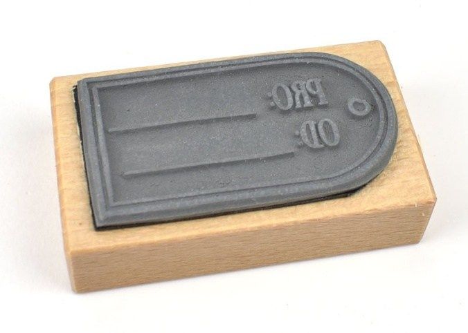 Gumové razítko na dřevěném bloku s nápisem PRO a OD, se kterým vytvoříte své originální visačky na dárky snadno a rychle.