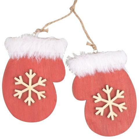 Dřevěné rukavice na zavěšení 9 cm, červené