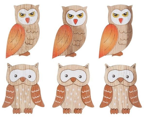 Dřevěné sovičky 2 motivy 4 cm, 6 ks