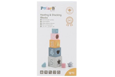 Dřevěná vkládačka 5 ks se zvířátky, čísly a tvary z každé strany kostky. Lze stavět jako pyramida na sebe. Rozměry cca 9 x 33 x 9 cm. Rozměry balení cca 10 x 10 x 18 cm. Věk 12m+