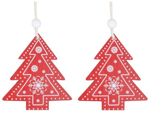 Dřevěné stromky na zavěšení červené 8 cm, 2 ks v sáčku