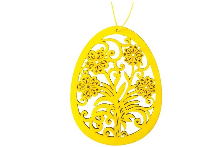 Dřevěné vajíčko na zavěšení žluté 10cm