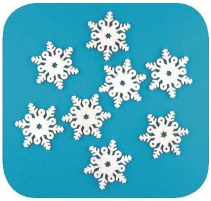 Dřevěné vločky s glitry 6 cm, 8 ks