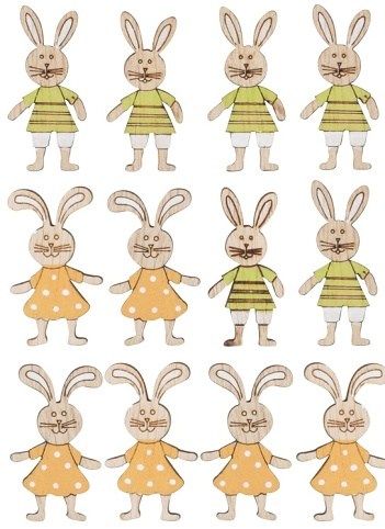 Dřevění zajíčci v tričku s lepíkem 4,5 cm, 12 ks v sáčku
