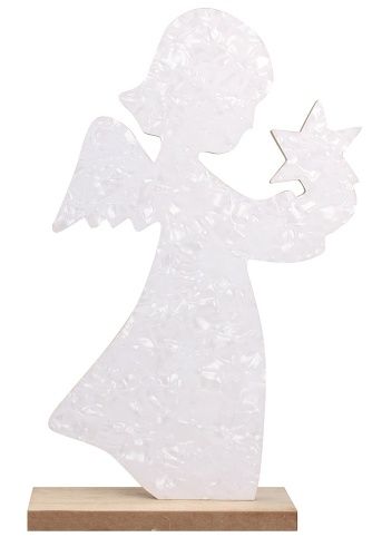 Dřevěný anděl na postavení bílý s hvězdou 21 cm