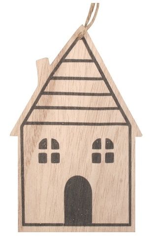 Dřevěný domek na zavěšení s černou konturou Dřevěný domeček využijete k různým dekoračním či aranžérským účelům. Můžete si ho zavěsit třeba na věnec, vánoční stromeček nebo na větvičku. Motiv domečku je velmi oblíbený a univerzální. Dekoraci tak můžete využít v průběhu celého roku.