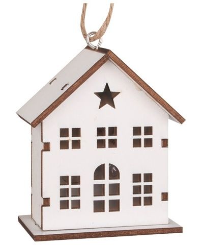 Dřevěný domek na zavěšení bílý s LED 6 x 7 x 3,5 cm