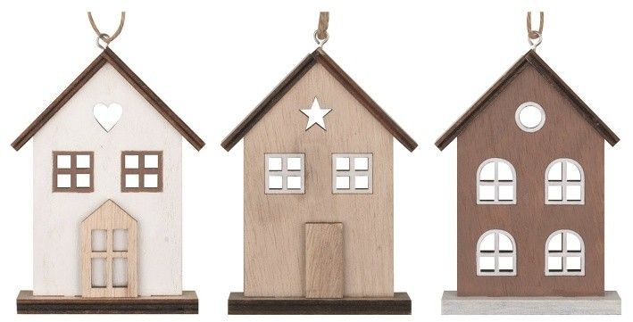 Dřevěný domek na zavěšení Dřevěný domeček využijete k různým dekoračním či aranžérským účelům. Můžete si ho zavěsit třeba na věnec, vánoční stromeček nebo na větvičku. Motiv domečku je velmi oblíbený a univerzální. Dekoraci tak můžete využít v průběhu celého roku.
